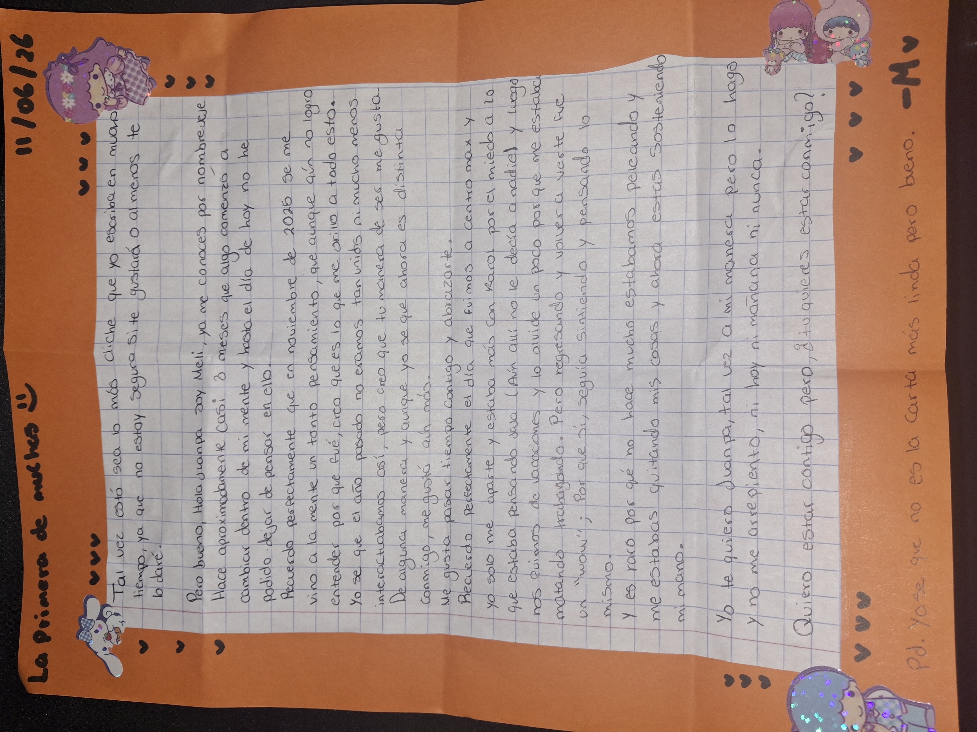 Hice esto porque te quiero y porque valoro mucho lo que vivimos. Estos días me han servido para darme cuenta en qué me equivoqué y en lo que tengo que mejorar.